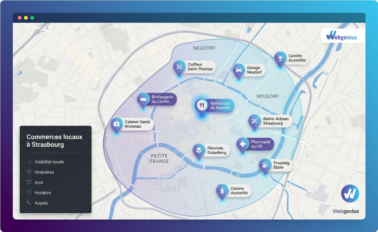 Webgenius accompagne les entreprises basées à Strasbourg et dans toute l’Alsace : Obernai, Sélestat, Haguenau, Molsheim, Saverne… et plus largement dans le Grand Est selon les projets.